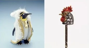 Examples of antique jewellery based on animal forms show the lighter-hearted side of life in the past – with fun pieces such as a cockerel tie pin set with diamonds and enamel, circa 1890.