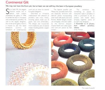 Until 31st Jan 2003, Kath Libbert Jewellery Gallery, Salt's Mill, Saltaire, West Yorkshire, lOam to 6pm. Tel: 01274599790