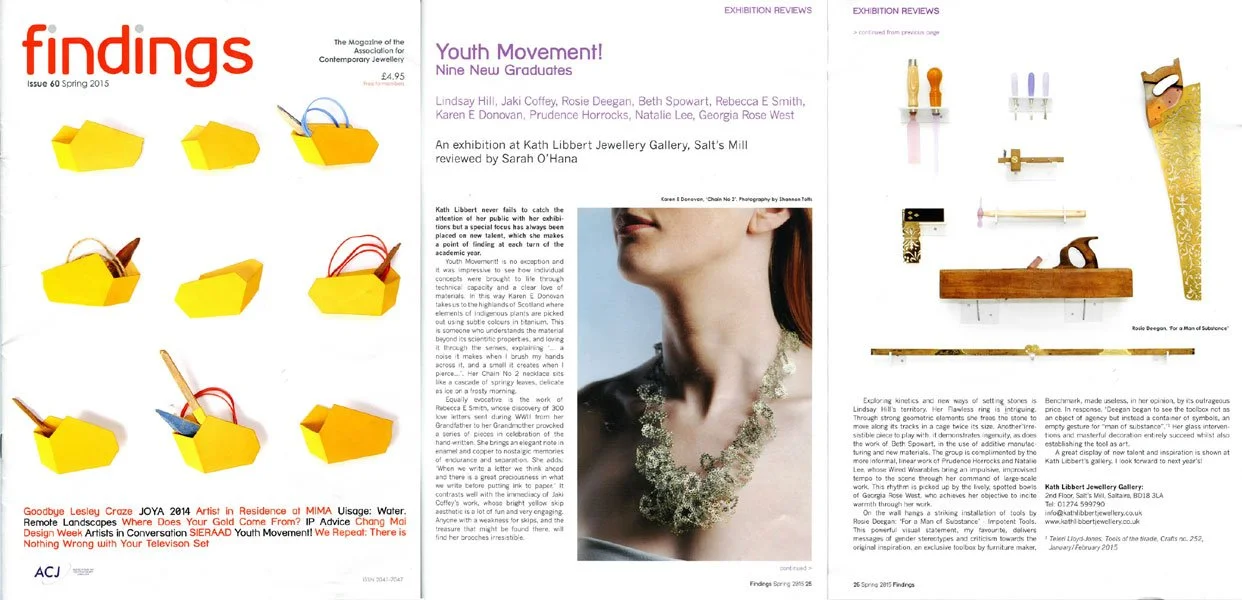 'Youth Movement! Nine New Graduates' is at Kath Libbert Jewellery, Salts Mill, Saltaire, Bradford BDi8 3!, until 25 January 2015.