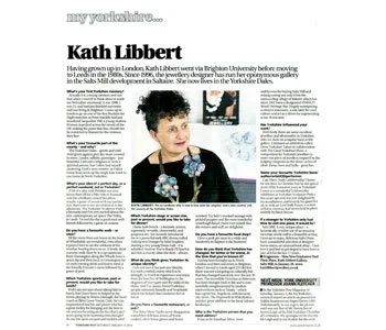 Having grown up in London, Kath Libbert went via Brighton University before moving to Leeds in the 1980s. Since 1996, the jewellery designer has run her eponymous gallery in the Salts Mill development in Saltaire. She now lives in the Yorkshire Dales.