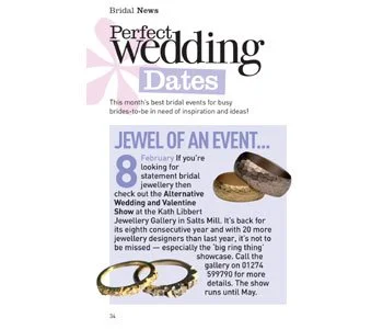 Her rings will be shown alongside more than 20 new collections of jewellery and accessories in the eighth annual Alternative Wedding and Valentine Show at Kath Libbert Jewellery Gallery, Salts Mill, Saltaire from tomorrow until May 3.