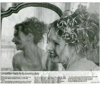 Kath's gallery is situated in the fabulous Salts Mill in Saltaire, just outside Bradford. The vast ground floor of the mill hosts a permanent exhibition of work by David Hockney, Together with a mad assortment of Burmantofts ceramics and fabulous antique furniture. The place is filled with the scent of lilies and the sound of opera, where visitors can browse through books and art equipment or simply enjoy the surroundings. The Kath Libbert Jewellery Gallery has a vibrant atmosphere, up on the second floor in a great central position. I was selected to exhibit my work in this now well-established annual exhibition that is much anticipated. I was one often jewellers chosen to create a tiara especially for this exhibition, the criterion being that it must retail at less than £200.