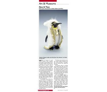 The jokey nature of Stebler's piece, along with Found Objects, Susan Osbom's clever comment on the search for weapons of mass destruction, is the inherent problem with the more recent works in the show. It feels like the contemporary jewellers featured in Now & Then are scared of creating an obviously poignant piece, choosing to hide any true emotion behind a pithy title or gag. Unfortunately, a joke only serves to make the pieces, including Emperor Penguin Freddie with Polar Bear Claw Necklace (pictured), by Felieke Van Der Leest,'seem throwaway.