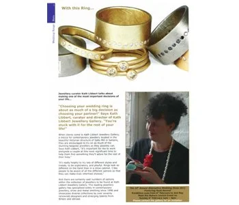 Kath Libbert Jewellery Gallery is as well known internationally for its boundary-pushing art jewellery exhibitions, as it is for its popular Annual Alternative Wedding Show, now in its 10th year. Quoted recently in The Times Luxx Magazine, Libbert says "Our clients are interested in jewels that push the boundaries. We think of ourselves as the antidote to the high street."
