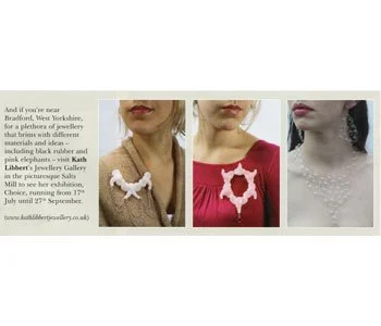 And if you're near Bradford, West Yorkshire, for a plethora of jewellery that brims with different materials and ideas - including black rubber and pink elephants - visit Kath Libbert's Jewellery Gallery in the picturesque Salts Mill to see her exhibition, Choice, running from 17th July until 27th September.