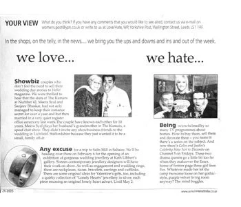 GETTING in gear for the wedding season, Kath Libbert Jewellery in Saltaire has formed a new partnership with bridal wear designer Anita Massarella and florist Diane Penny. The collaboration forms something of a one-stop-shop so that brides to be can choose from interesting ranges of contemporary jewellery, dresses and flowers for their big day. The jewellery ranges from variations of a traditional theme with handcrafted gold and white gold bands, to 'traditional with a twist' as in Jeremy G Hicks' Puzzle ring, to the downright different in the form of Mikala Djorup's Branch ring.